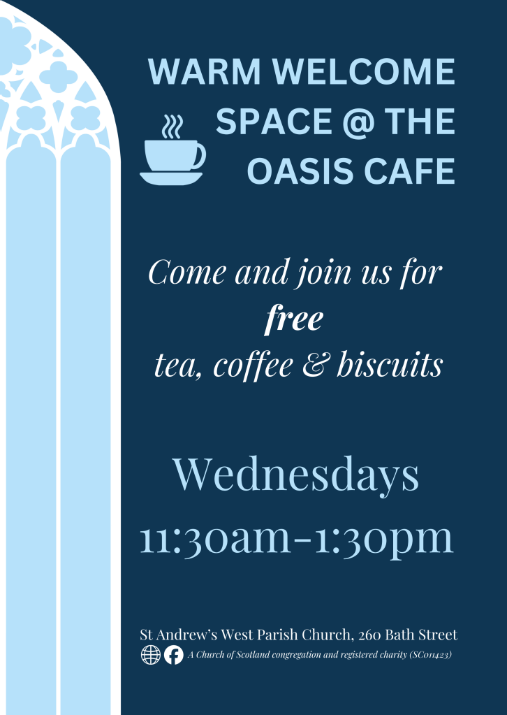 The next Warm Space will be on Wednesday 11th February 2026, 11.30am-1.30pm. The Warm Welcome Space will continue every Wednesday morning from 11.30am. We encourage you all to come along and bring your friends.